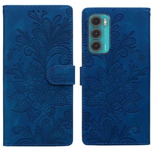 Funda de Cuero con Hebilla Magnética y Diseño Floral para Motorola Moto G60 (Azul)