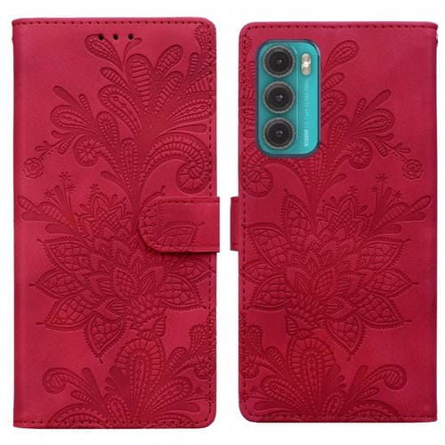 Funda de Cuero con Hebilla Magnética y Diseño Floral para Motorola Moto G60 (Rojo)