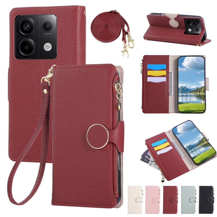 Funda de cuero con hebilla redonda y cremallera para Redmi Note 13 Pro 4G, con correa cruzada (roja)
