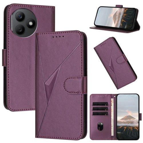Funda de Cuero con Hebilla y Diseño Triángulos para Honor X50I+ (Morado Oscuro)
