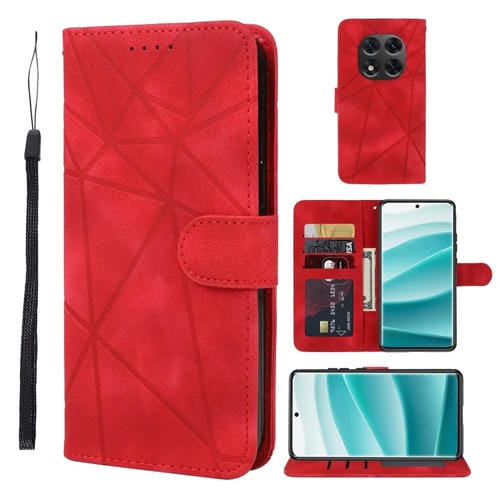 Funda de Cuero con Líneas Geométricas y Tacto de Piel para Redmi Note 14 Pro 5G (Rojo)