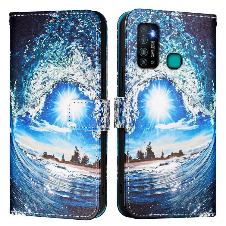 Funda de Cuero para Infinix Hot 9 y Hot 9 Pro con Patrón de Dibujo Ondas y Sol