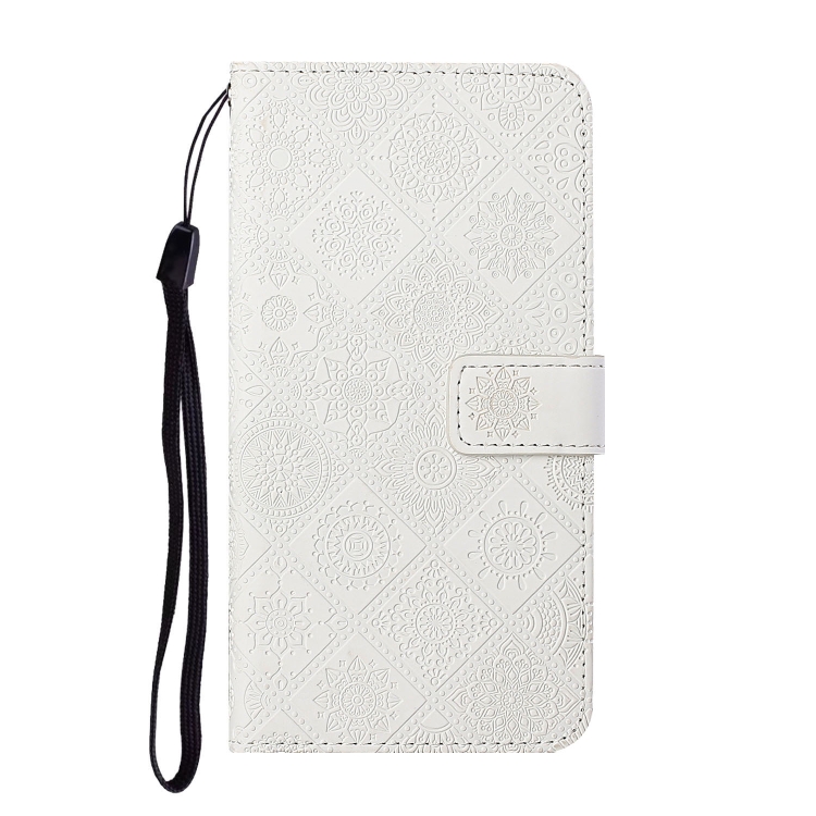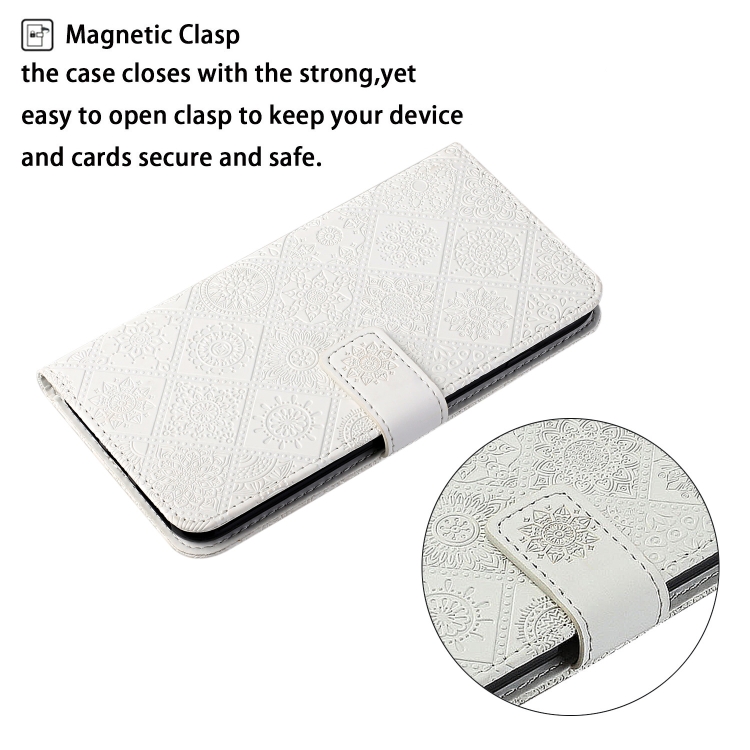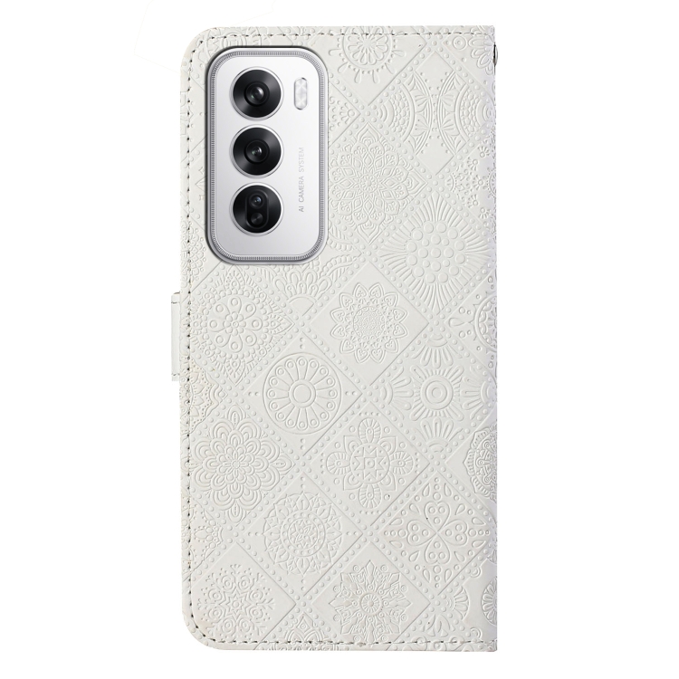 Funda de Cuero con Patrón En Relieve de Estilo Étnico Global para Oppo Reno12 5G (Blanco)