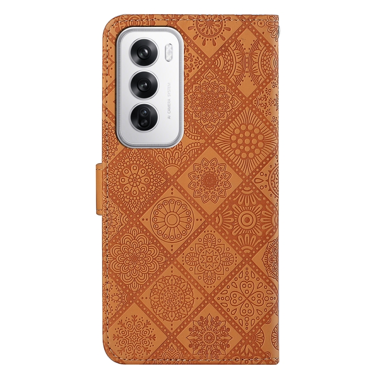 Funda de Cuero con Patrón En Relieve de Estilo Étnico Global para Oppo Reno12 5G (Marrón)