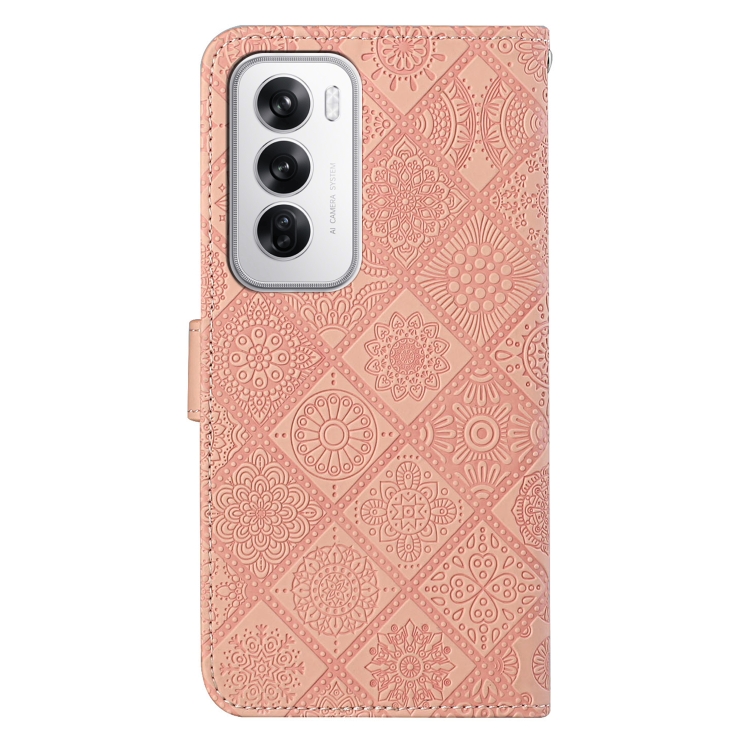 Funda de Cuero con Patrón En Relieve de Estilo Étnico Global para Oppo Reno12 5G (Rosa)