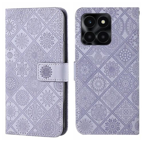Funda de Cuero con Patrón en Relieve Estilo Étnico para Honor X6A/X6B (Morado)