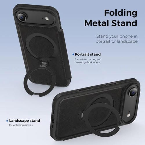 Funda de cuero con protección MagSafe RFID para iPhone 17, con rotación de 360 grados y soporte (negro)