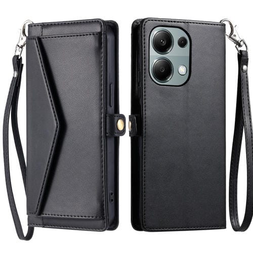 Funda de Cuero con Ranura para Múltiples Tarjetas y Billetera Global para Redmi Note 13 Pro 4G con Cordón (Negro)
