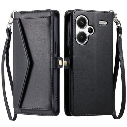 Funda de Cuero con Ranura para Múltiples Tarjetas y Billetera Global para Redmi Note 13 Pro+ 5G con Cordón (Negro)