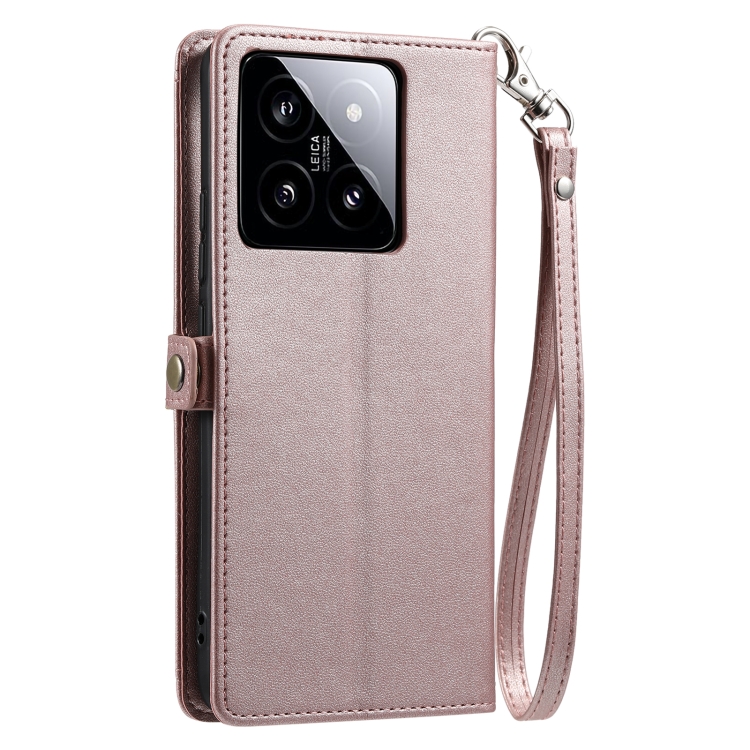Funda De Cuero Con Ranura Para Múltiples Tarjetas Y Cordón Para Xiaomi 14 (Oro Rosa)