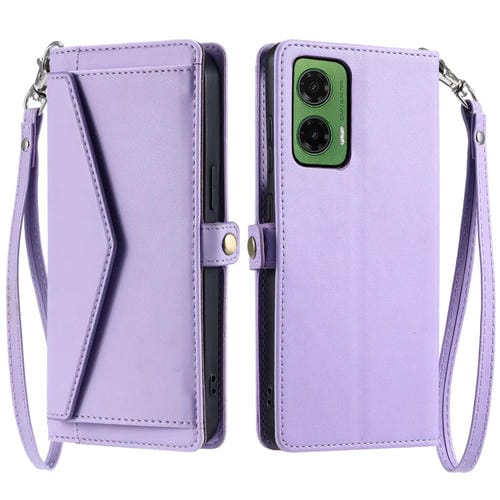 Funda de Cuero para Motorola Moto G35 con Ranura para Tarjetas y Cordón (Morado)