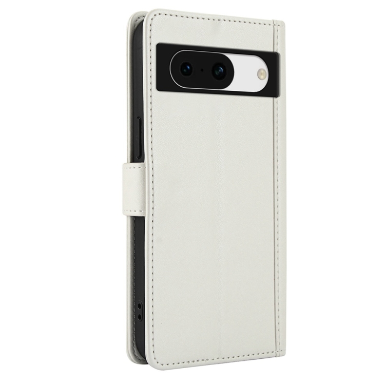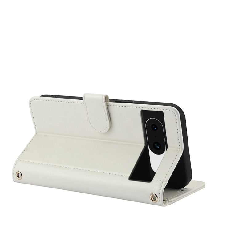 Funda de Cuero para Google Pixel 8A con Ranuras para Tarjetas y Cordón Doble (Blanco)