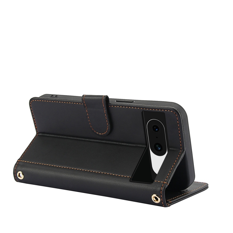 Funda de Cuero para Google Pixel 8A con Ranuras para Tarjetas y Cordón Doble (Negro)