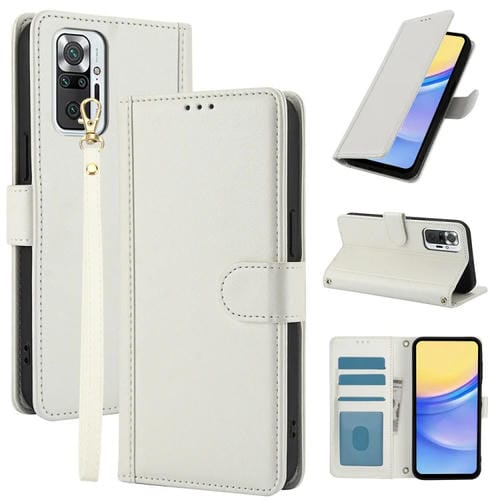 Funda de Cuero con Ranuras para Tarjetas y Diseño de Piel Sintética de Color Puro para Redmi Note 10 Pro 4G/Note 10 Pro Max con Cordón Doble (Blanco)