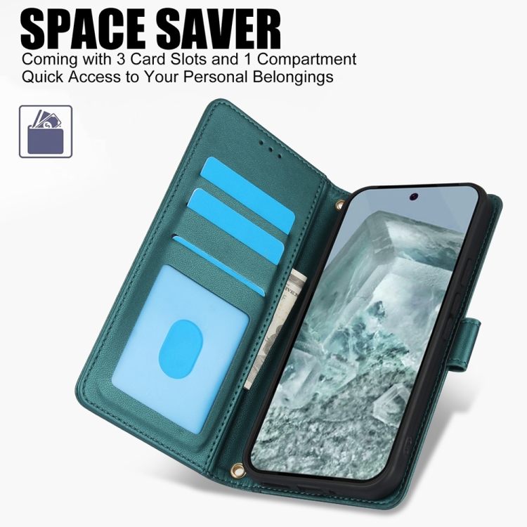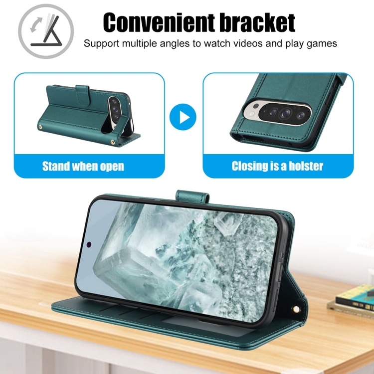 Funda de Cuero para Google Pixel 9/9 Pro con Ranuras para Tarjetas y Doble Cordón (Verde)