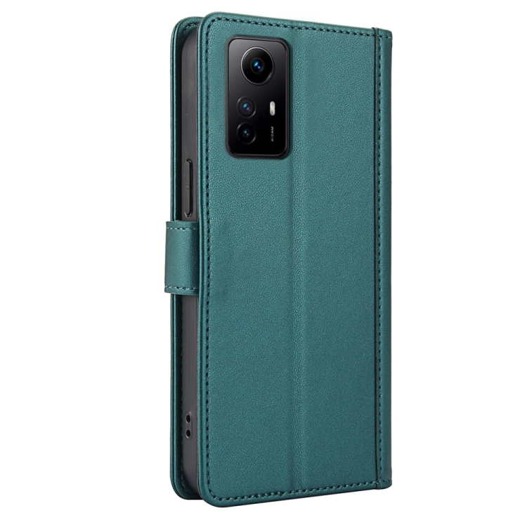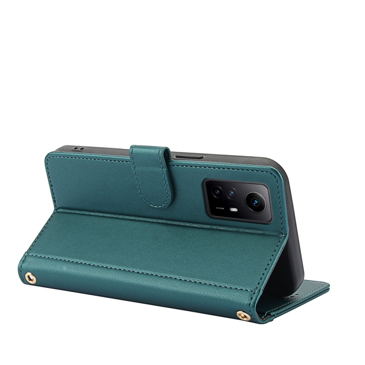 Funda de Cuero con Ranuras para Tarjetas y Tacto de Piel Global para Redmi Note 11 4G/Note 12S 4G con Cordón Doble (Verde)