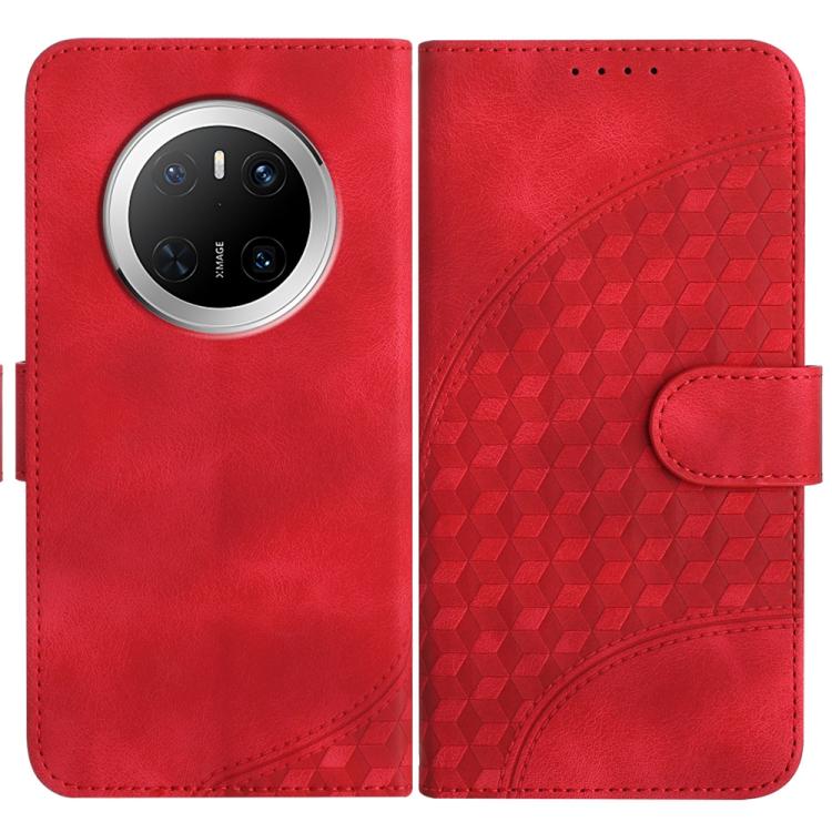 Funda de Cuero Huawei Mate 70 con Relieve de Cabeza de Elefante y Cordón (Rojo)