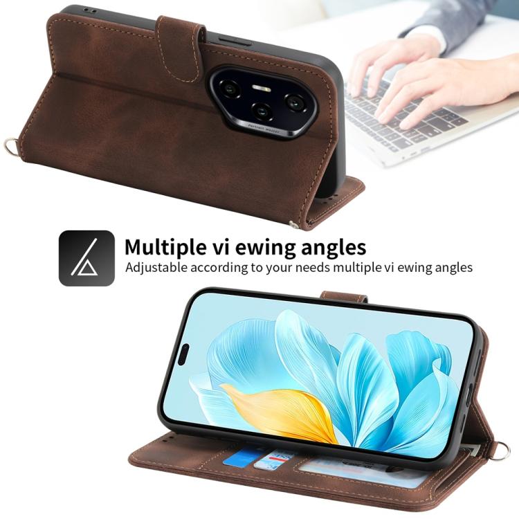 Funda de Cuero con Relieve de Flores para Honor 300 Pro y 300 Ultra (Marrón)