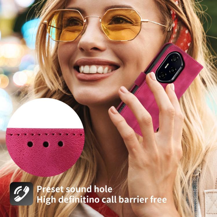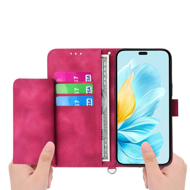 Funda de Cuero con Relieve de Flores para Honor 300 Pro/300 Ultra (Rojo Vino)