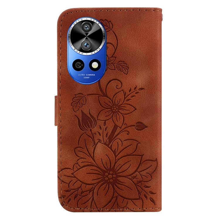 - 1x Funda de Cuero con Relieve de Lirio para Huawei Nova 12 Ultra (Marrón)