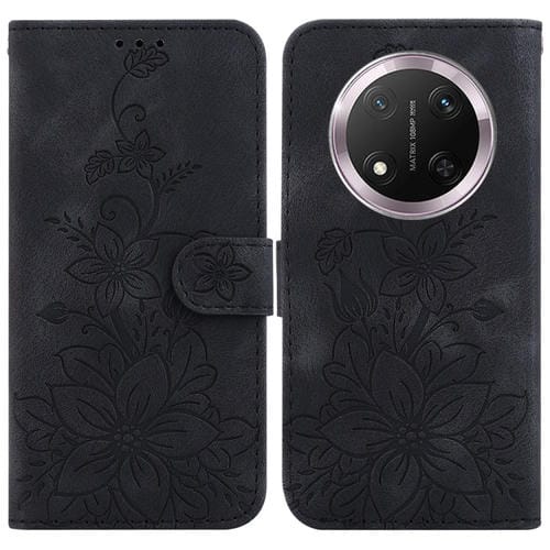 Funda de Cuero con Relieve de Lirio para Honor X9C (Negra)