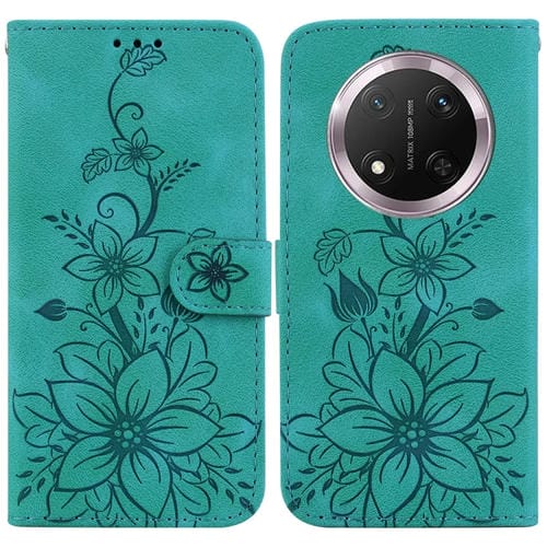 Funda de Cuero con Relieve de Lirio para Honor X9C (Verde)