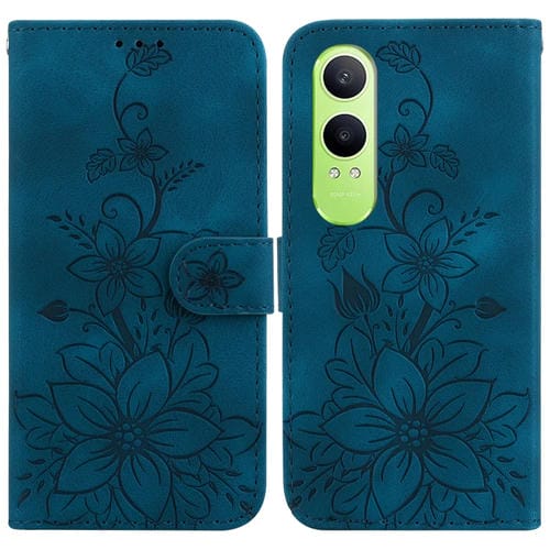 Funda de Cuero con Relieve de Lirios para OnePlus Nord Ce4 Lite (Azul Oscuro)
