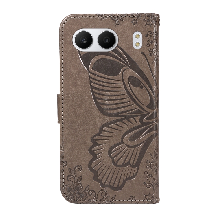 Funda de Cuero con Relieve Mariposa en Cola de Golondrina para OnePlus Nord 4 5G (Gris)