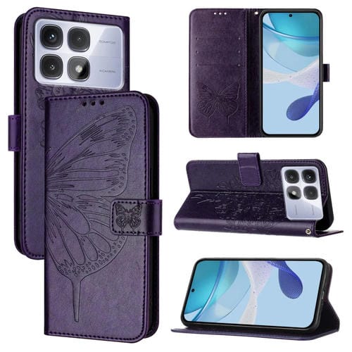 Funda de Cuero con Relieve de Mariposa para Redmi K70 Ultra 5G (Morado Oscuro)
