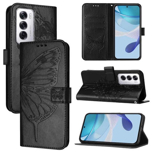 Funda de Cuero con Relieve de Mariposa para Teléfono Oppo Reno12 5G (Negra)