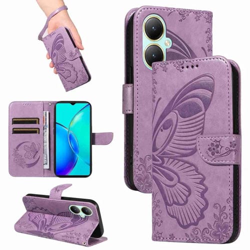 Funda de Cuero con Relieve de Mariposa para Vivo Y27 (Morado)