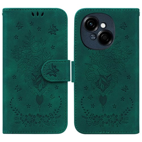 Funda de Cuero con Relieve Mariposa y Rosa para Tecno Spark Go 1 Pop 9 Pro (Verde)