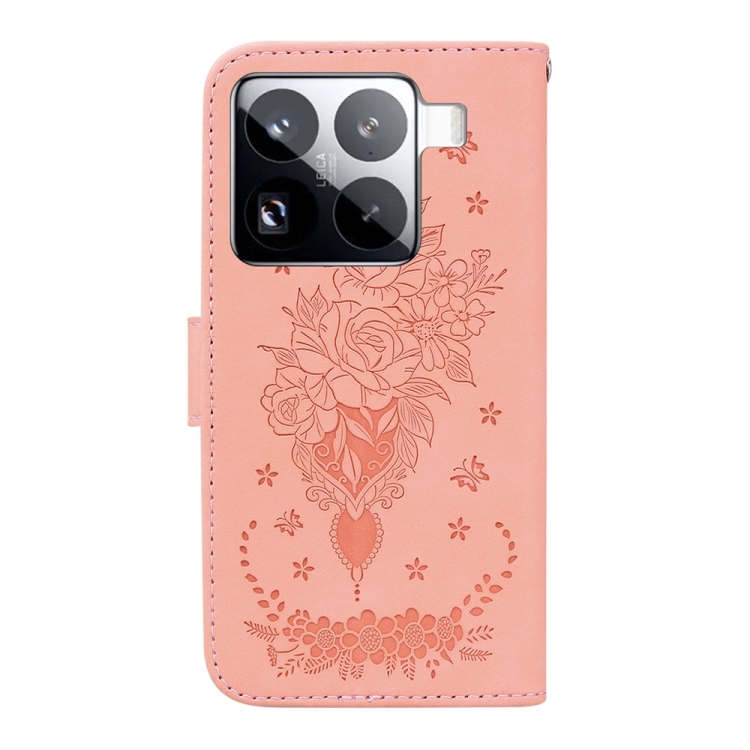 Funda De Cuero Con Relieve De Mariposa Y Rosa Para Xiaomi 15 Pro (Rosa)