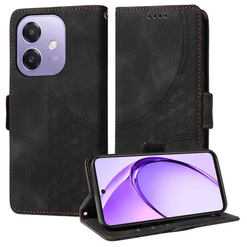 Funda de Cuero con Relieve de Rombos y Estrellas para Oppo A3X 4G/A3X 5G (Negra)