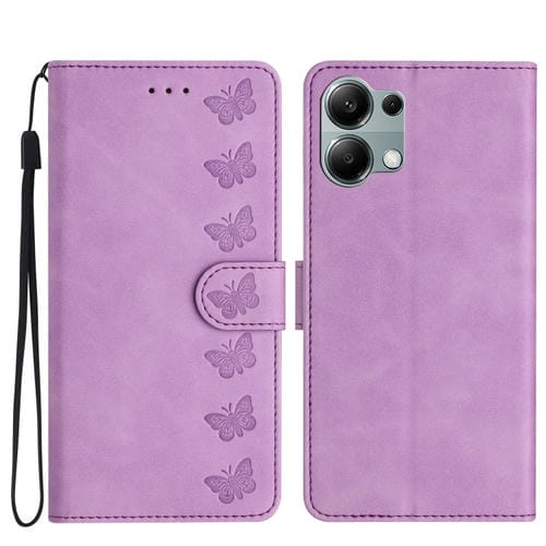 Funda de Cuero con Relieve de Siete Mariposas para Redmi Note 13 Pro 4G (Morado)