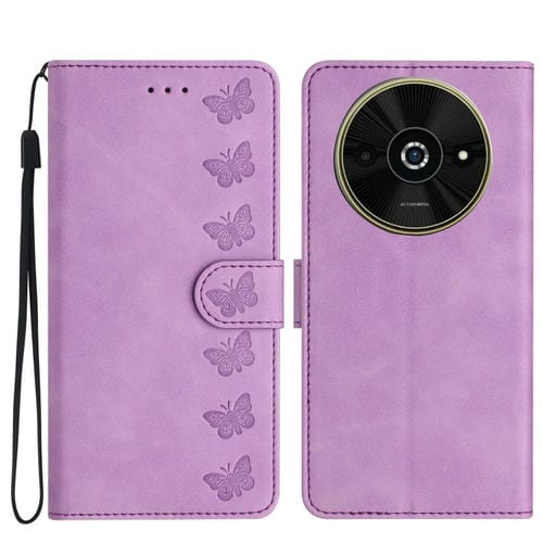 Funda de Cuero con Relieve de Siete Mariposas para Xiaomi Poco C61 (Morado)