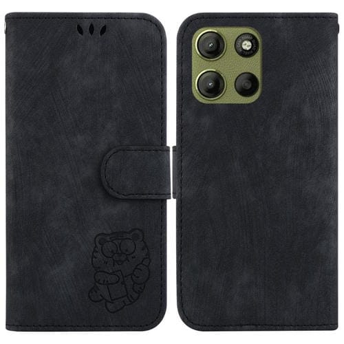 Funda de Cuero con Relieve de Tigre para Motorola Moto G15 (Negra)