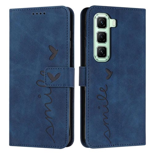Funda de Cuero con Relieve Corazón para Infinix Hot 50 4G (Azul)