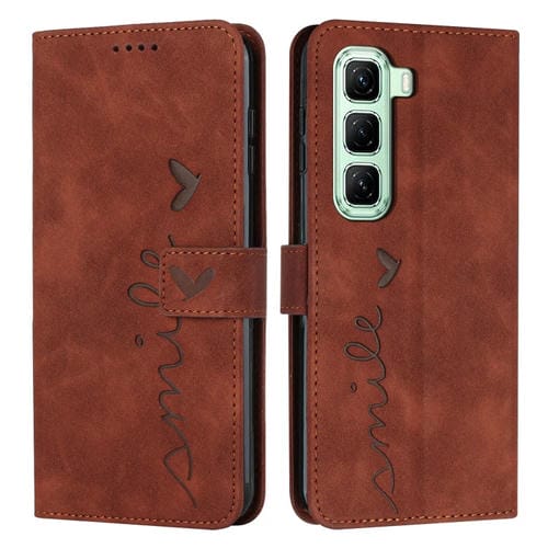 Funda de Cuero con Relieve en Forma de Corazón para Infinix Hot 50 5G (Marrón)