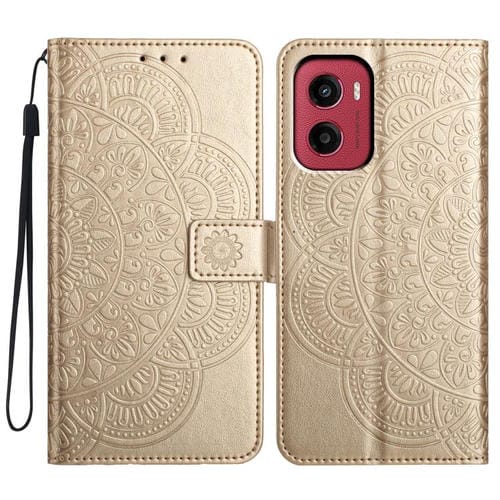 Funda de Cuero con Relieve Floral para Motorola Moto G05 (Dorada)
