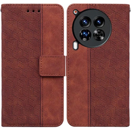 Funda de Cuero Tecno Camon 30 Premier 5G con Relieve Geométrico (Marrón)