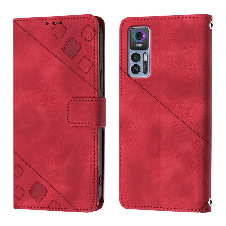Funda de Cuero con Relieve para Teléfono TCL 30+ Skin Feel (Rojo)
