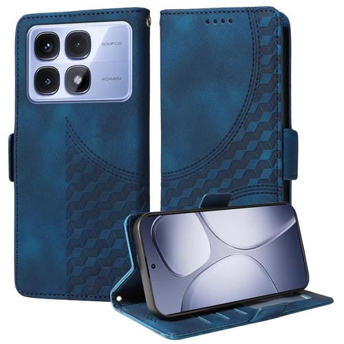 Funda de Cuero con Rombos En Relieve y Estrellas para Redmi K70 Ultra (Azul)