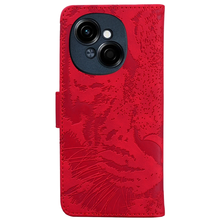Funda de Cuero con Tapa para Tecno Spark Go 1 y Pop 9 Pro con Estampado de Tigre (Rojo)