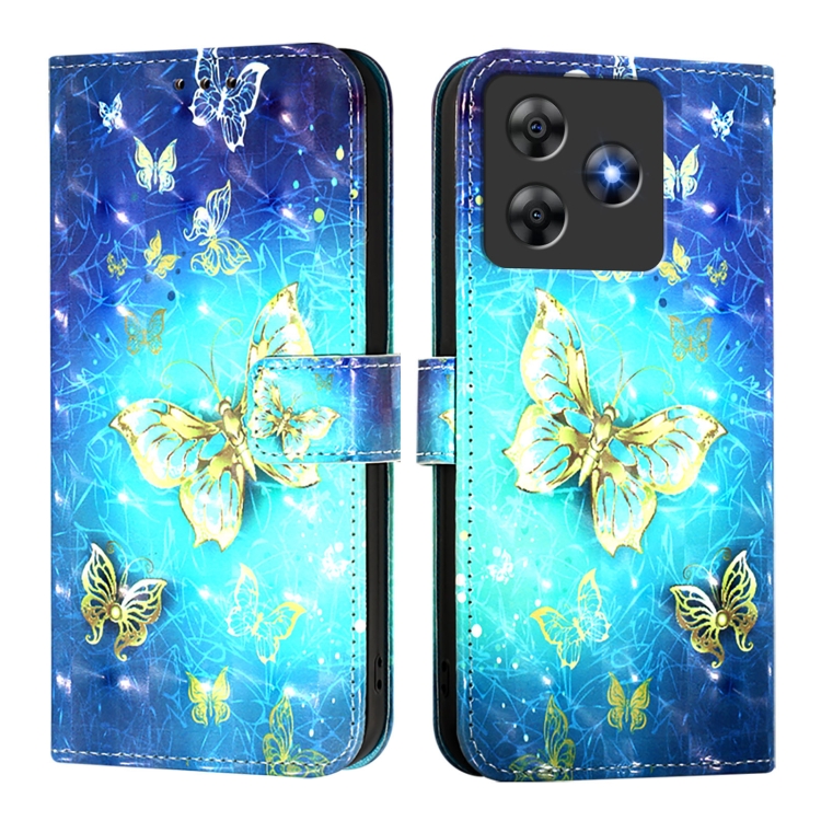Funda de Cuero con Tapa Horizontal y Pintura 3D para BlackView Wave 8C (Mariposa Dorada)