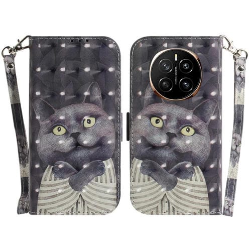 Funda de Cuero con Tapa Horizontal 3D para Teléfono Honor Magic7 (Hug Cat)