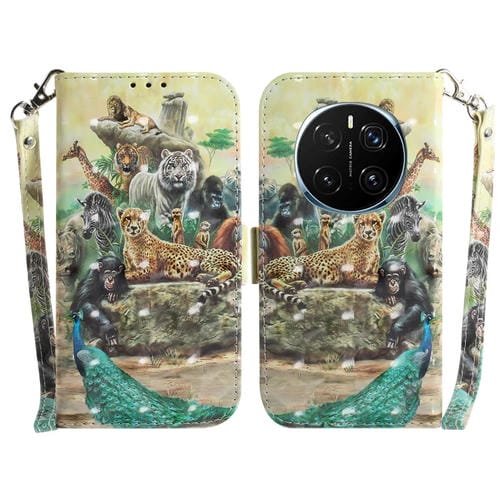 Funda de Cuero con Tapa Horizontal y Diseño 3D para Honor Magic7 Pro (Zoológico)