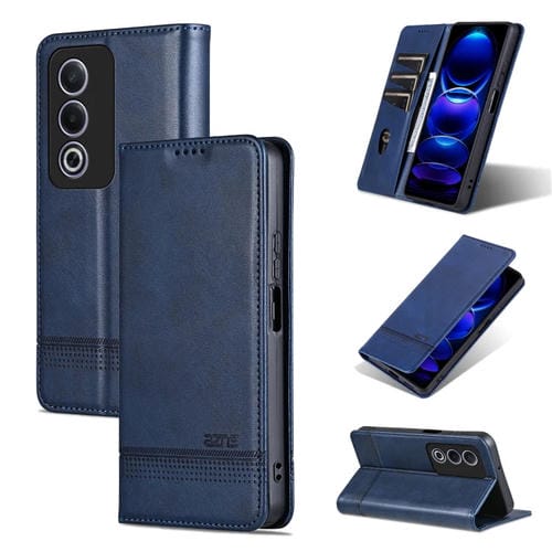 Funda de Cuero con Tapa Magnética con Textura de Piel de Becerro Azns para Oppo A3 Pro 5G Global (Azul Oscuro)