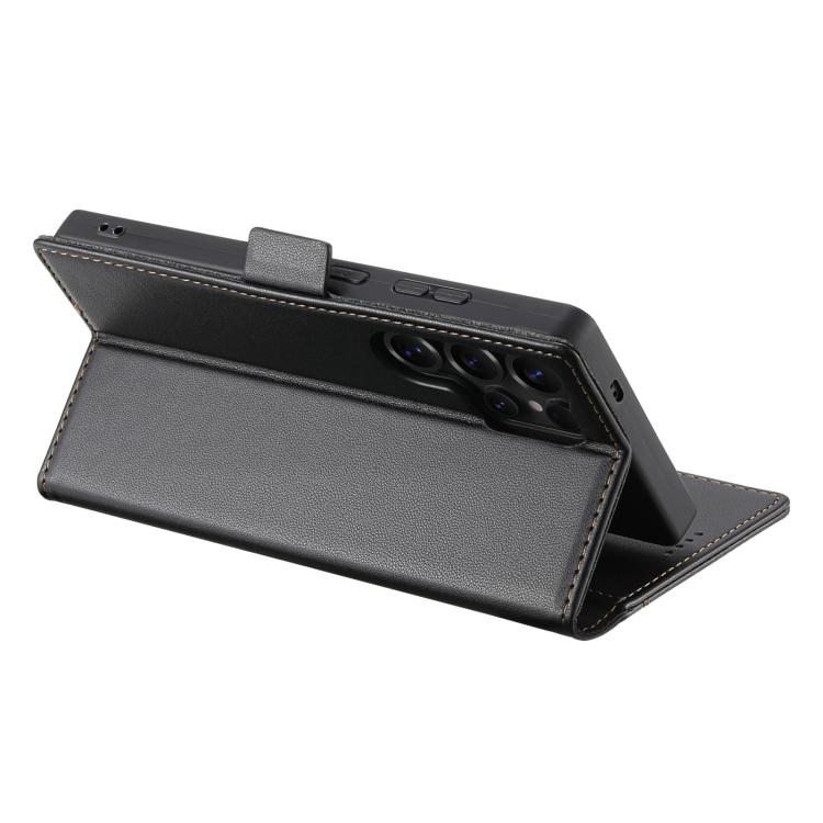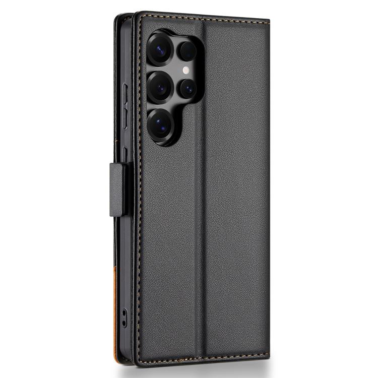 Funda de cuero con tapa magnética y costuras RFID para Samsung Galaxy S24 Ultra 5G N.BEKUS P3 (negro)