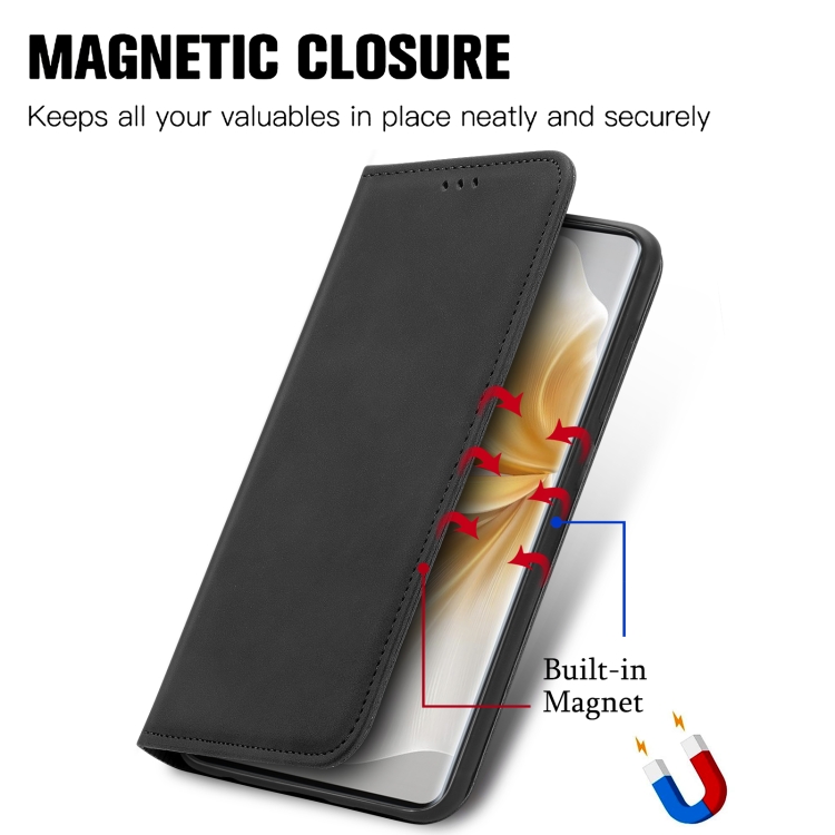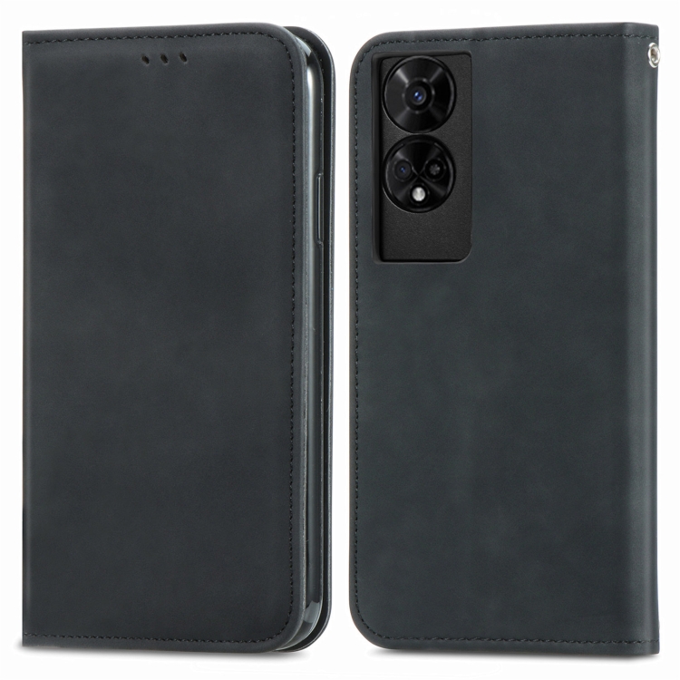Funda de Cuero para Teléfono TCL 50 5G con Tapa Magnética y Tacto Retro (Negro)